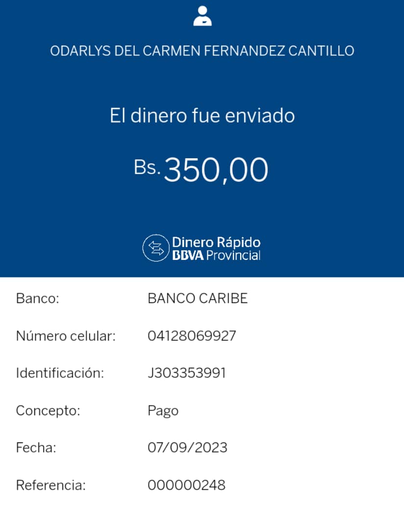 Pago realizado de Selecciona el día 2023-09-07 utilizando Pago Móvil Bs. Ver Comprobante